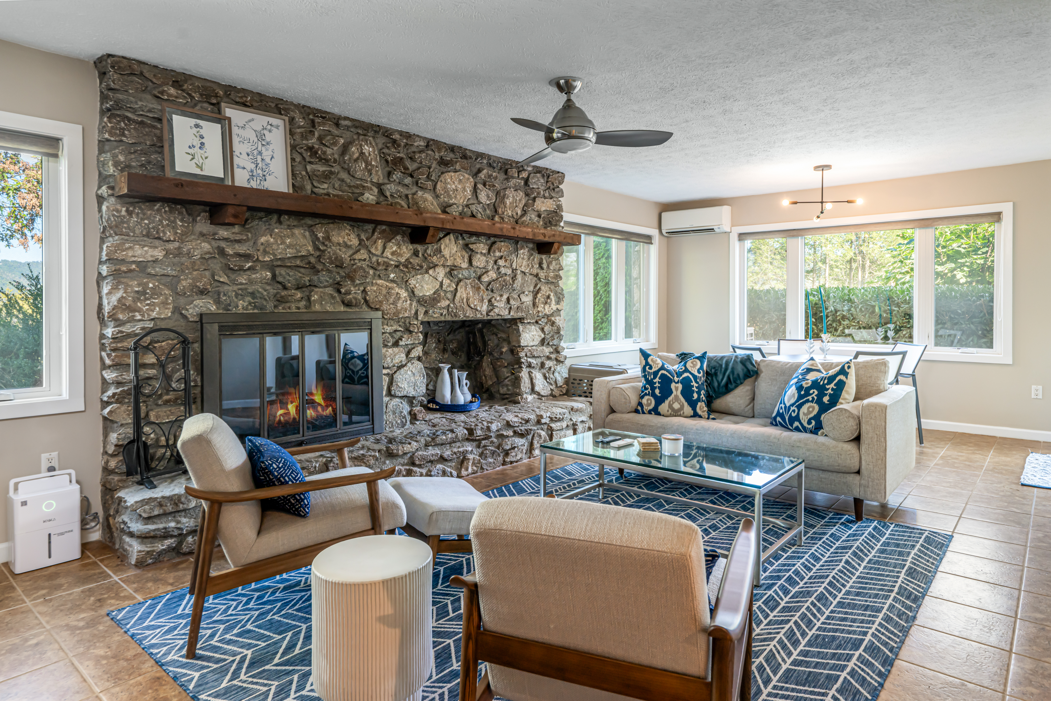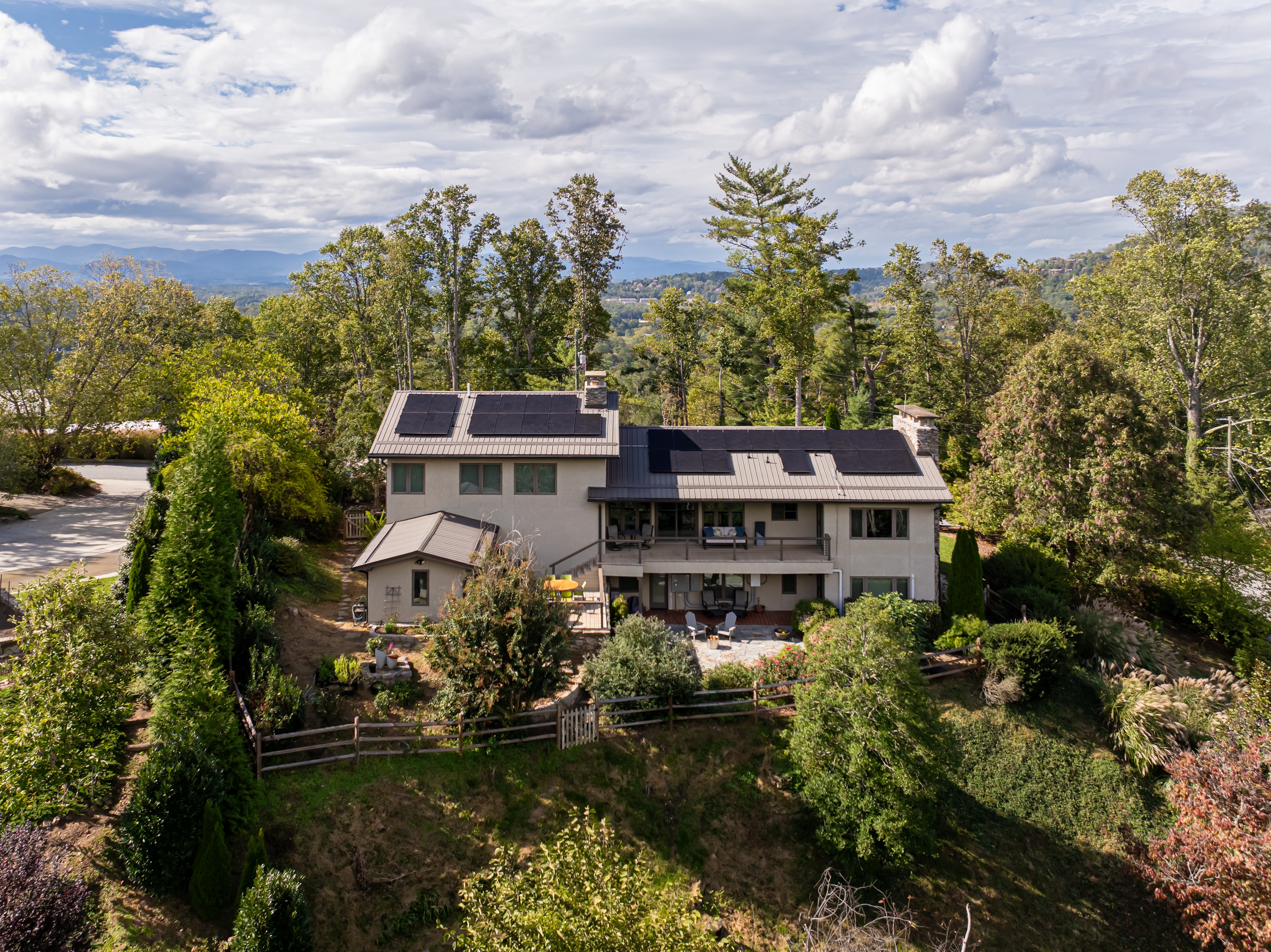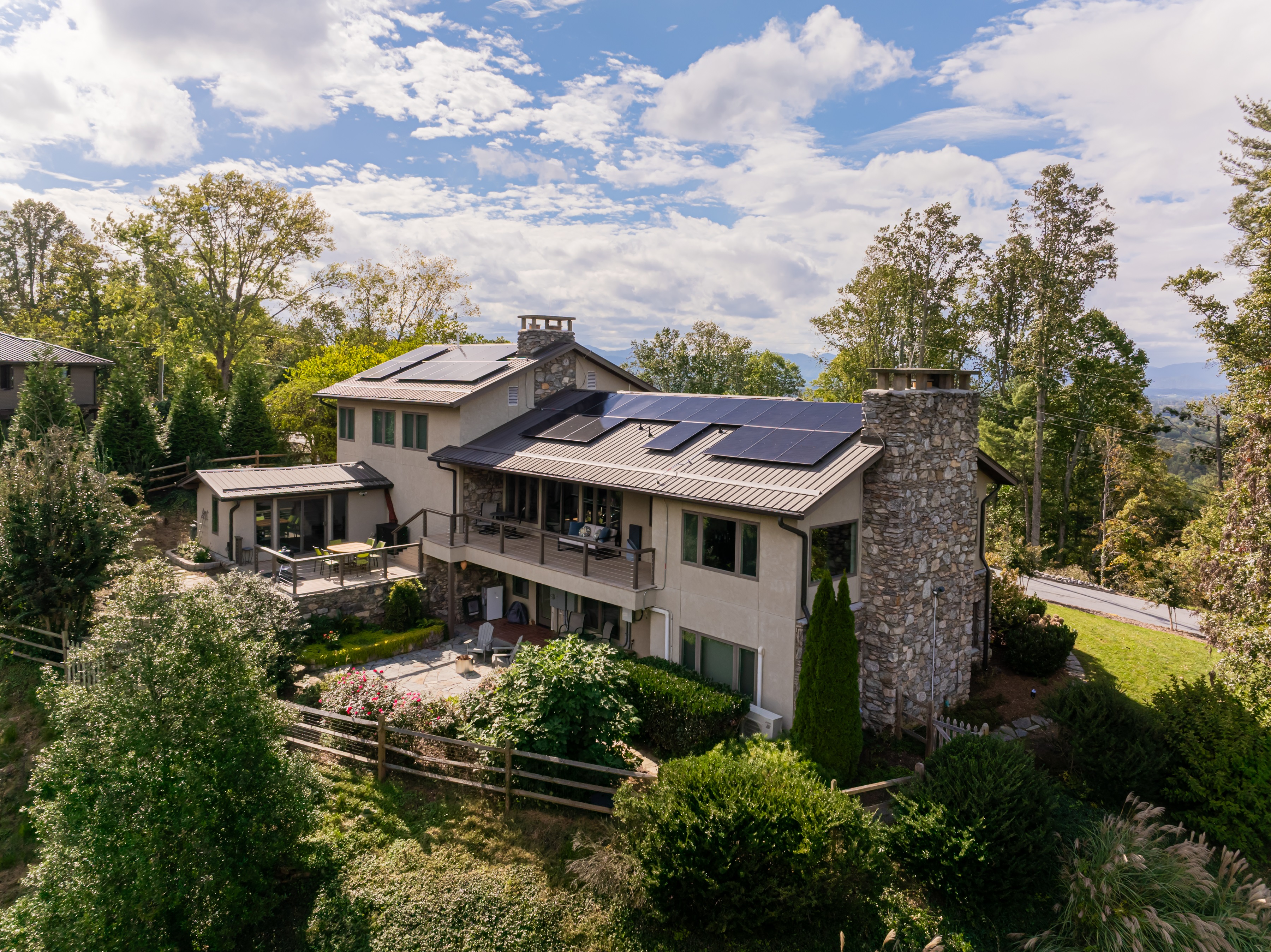 North Asheville’s premier hilltop address on Lookout Mountain with panoramic views this home offers the best of both worlds—quiet seclusion on nearly two-thirds of an acre, yet only minutes from downtown. Expansive long-range mountain views can be enjoyed from every room. The home a spacious primary suite, four stone fireplaces (two gas, two wood-burning), vaulted ceilings, and multiple decks for outdoor living. Updates include a new metal roof, 12.9 kWh solar array with two backup batteries, stucco exterior that complements the natural stone, all new Andersen windows and doors, a multi-zone heat pump/AC, and professional landscaping with native plants. The large primary suite is a true retreat with a wood-burning fireplace, jetted tub, glass-enclosed shower, and stackable laundry. The lower level provides a second kitchen, living area, full bath and its own entrance—perfect for use as a rental or mother-in-law suite. Additional features include a two-car garage, abundant parking, and a 200 sq. ft. bonus room ideal for an art studio, office, gym, or craft space—all with mountain views as the backdrop. Includes all the furniture!!