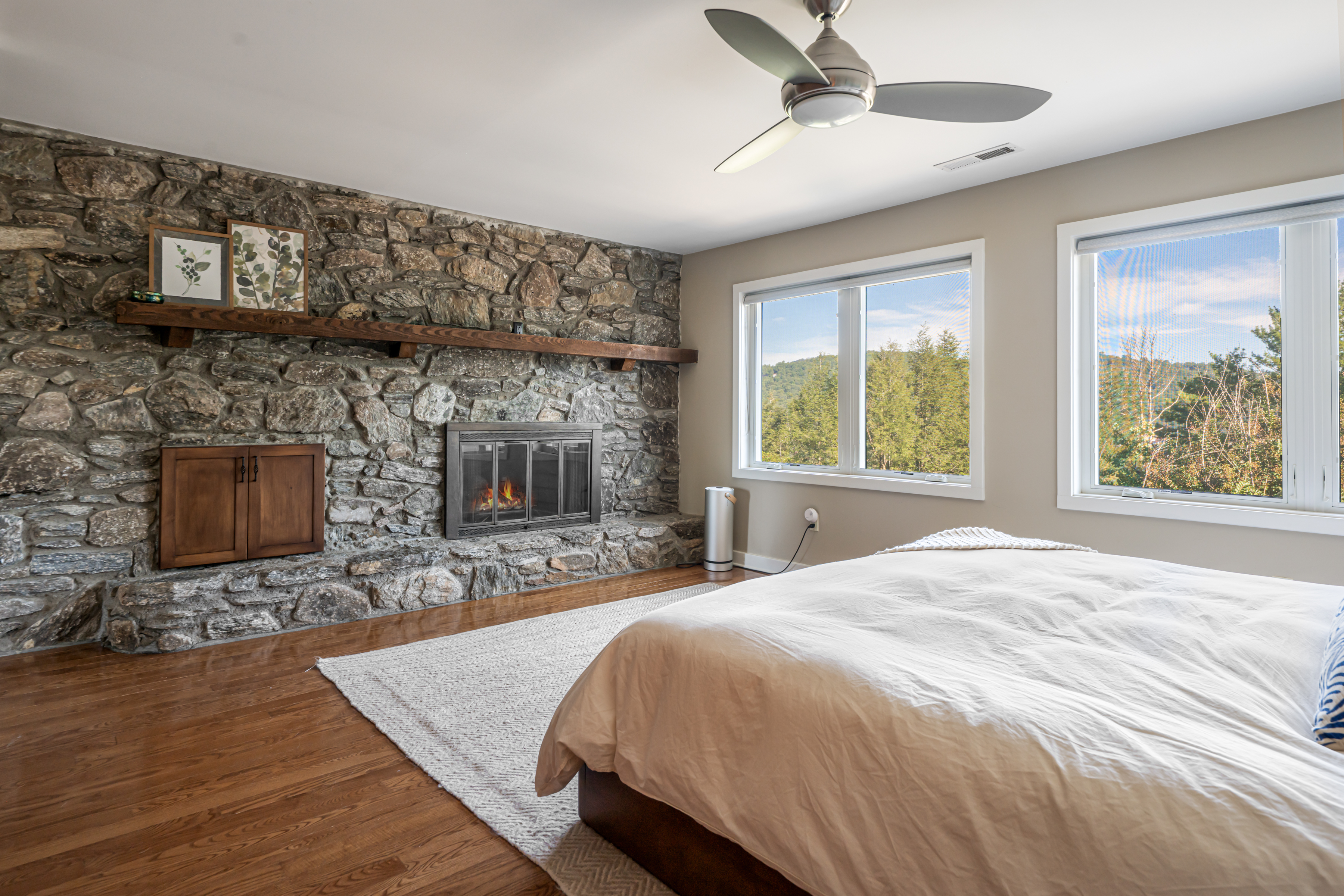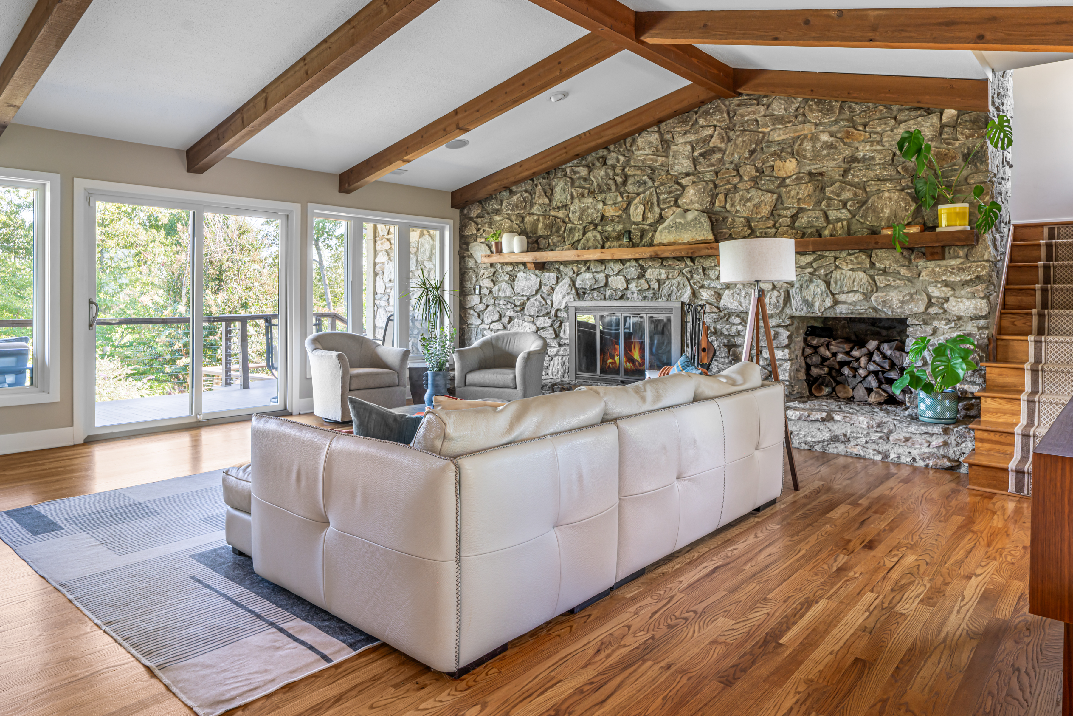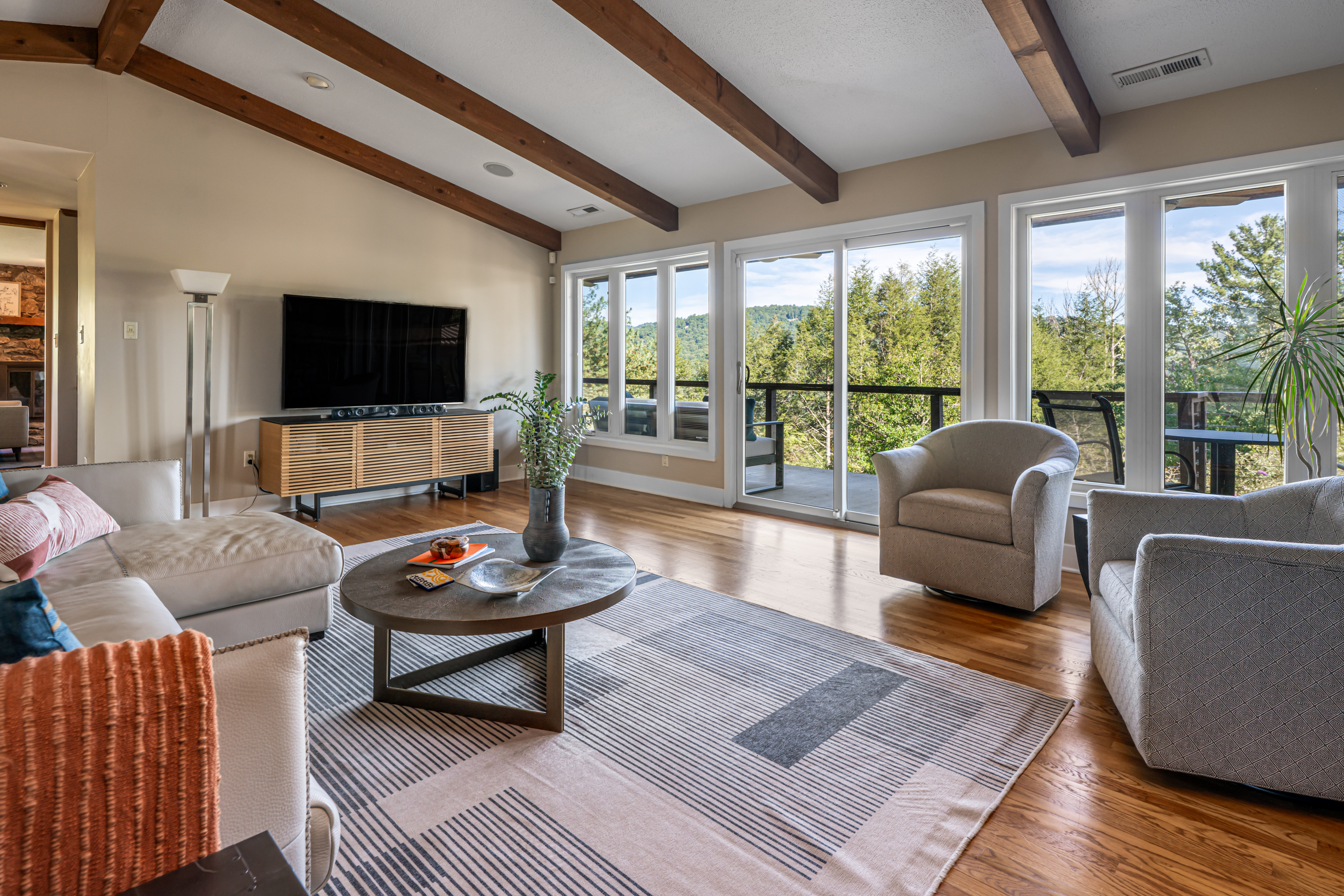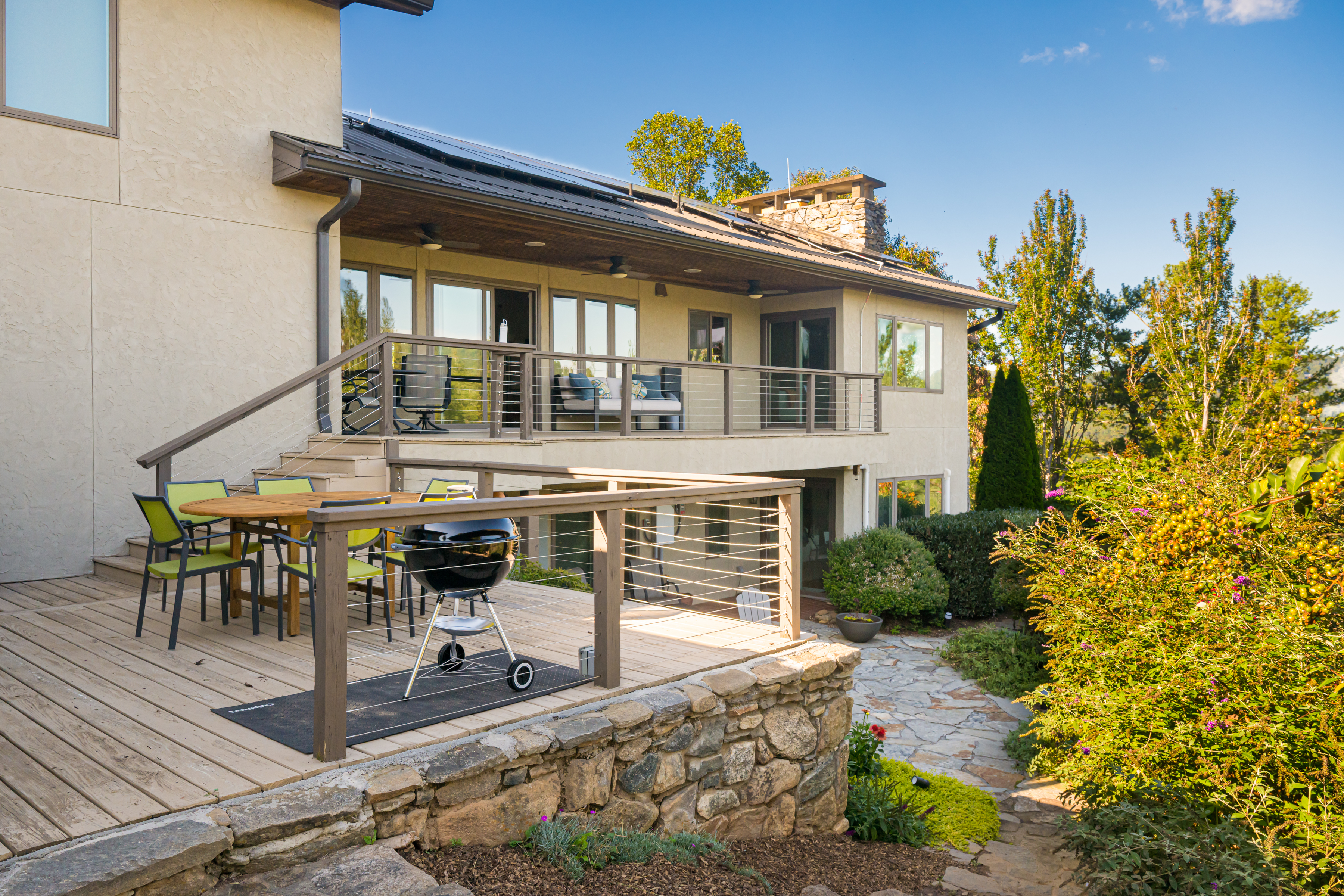 North Asheville’s premier hilltop address on Lookout Mountain with panoramic views this home offers the best of both worlds—quiet seclusion on nearly two-thirds of an acre, yet only minutes from downtown. Expansive long-range mountain views can be enjoyed from every room. The home a spacious primary suite, four stone fireplaces (two gas, two wood-burning), vaulted ceilings, and multiple decks for outdoor living. Updates include a new metal roof, 12.9 kWh solar array with two backup batteries, stucco exterior that complements the natural stone, all new Andersen windows and doors, a multi-zone heat pump/AC, and professional landscaping with native plants. The large primary suite is a true retreat with a wood-burning fireplace, jetted tub, glass-enclosed shower, and stackable laundry. The lower level provides a second kitchen, living area, full bath and its own entrance—perfect for use as a rental or mother-in-law suite. Additional features include a two-car garage, abundant parking, and a 200 sq. ft. bonus room ideal for an art studio, office, gym, or craft space—all with mountain views as the backdrop. Includes all the furniture!!